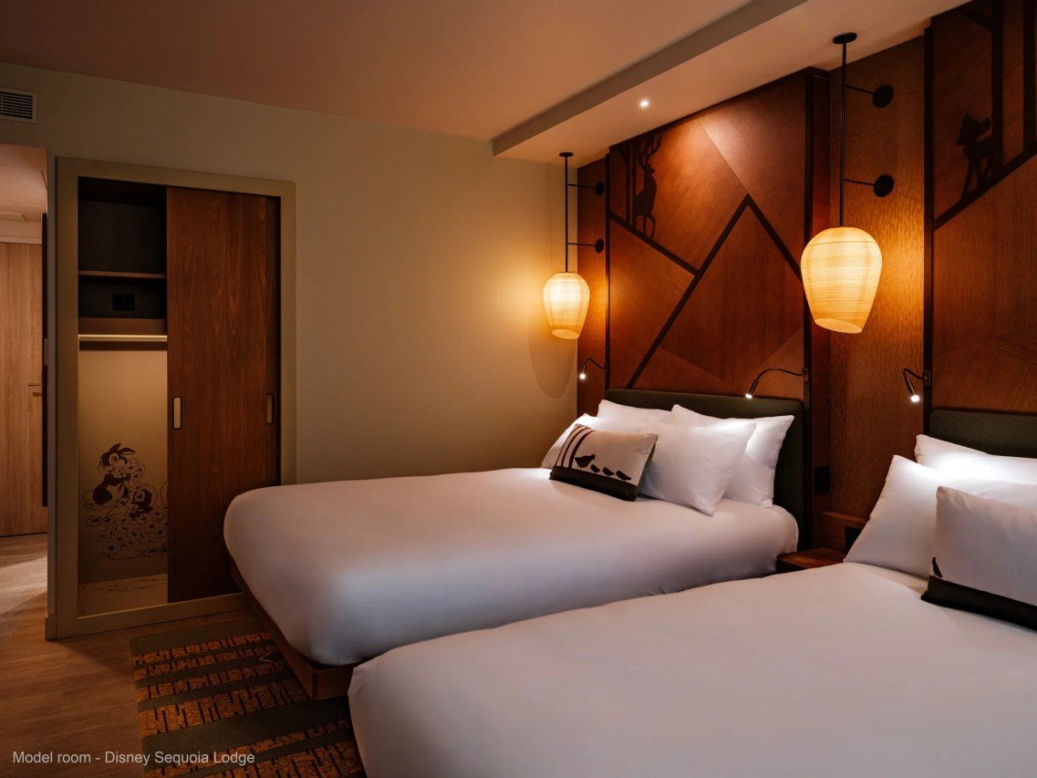 Die neuen Zimmer der Disney Sequoia Lodge sollen vor allem eines vermitteln: Gemütlichkeit und Naturverbundenheit. Holzstrukturen, warme Farbtöne und natürliche Materialien prägen das Design und erinnern weiterhin an die großen Waldlodges der amerikanischen Nationalparks, die auch die Inspiration für das gesamte Hotel waren.
