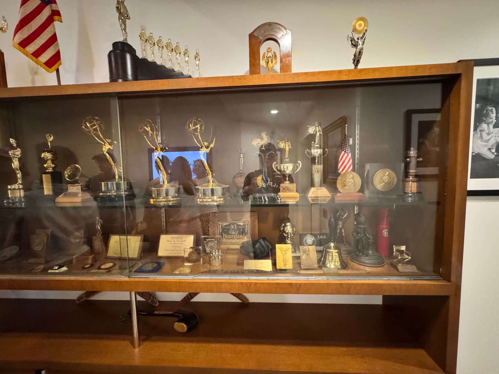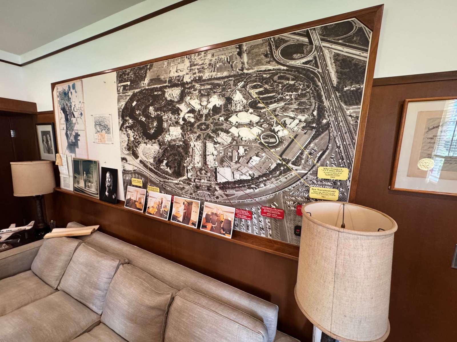Die Räume sind heute so rekonstruiert, wie sie 1966 aussahen. Im „Working Office“ konnte ich mir lebhaft vorstellen, wie Walt hier neue Ideen entwickelte oder mit den Sherman-Brüdern an Songs feilte. Gleich daneben das „Formal Office“, in dem er Gäste empfing – alles voller persönlicher Details, von seiner Miniatur-Lokomotive bis zu kleinen Geschenken, die Mitarbeiter ihm gemacht hatten. Sehr beeindruckend war auch die Wandvitrine, die voll war mit renommierten Preisen, die Walt Disney zu Lebzeiten erhalten hatte. Bis heute gilt er als der Mensch, der die meisten Oscars zu Lebzeiten erhielt.