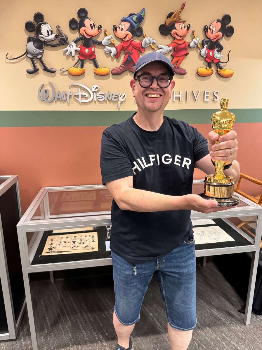 Der Weg führte uns anschließend in die Walt Disney Archives, ein wahres Schatzhaus der Firmengeschichte. Zwischen Originalzeichnungen, Kostümen und Requisiten wartete das größte Highlight des Tages: Wir durften einen echten Oscar in die Hand nehmen! Nicht irgendeinen, sondern einen der begehrten Academy Awards, die Walt Disney 1955 für den Dokumentarfil “Wunder der Prärie” selbst verliehen wurden. Das Gewicht der Statue, der Glanz des Metalls und der Gedanke, welch historische Bedeutung dieser Preis hat, machten diesen Moment unvergesslich.