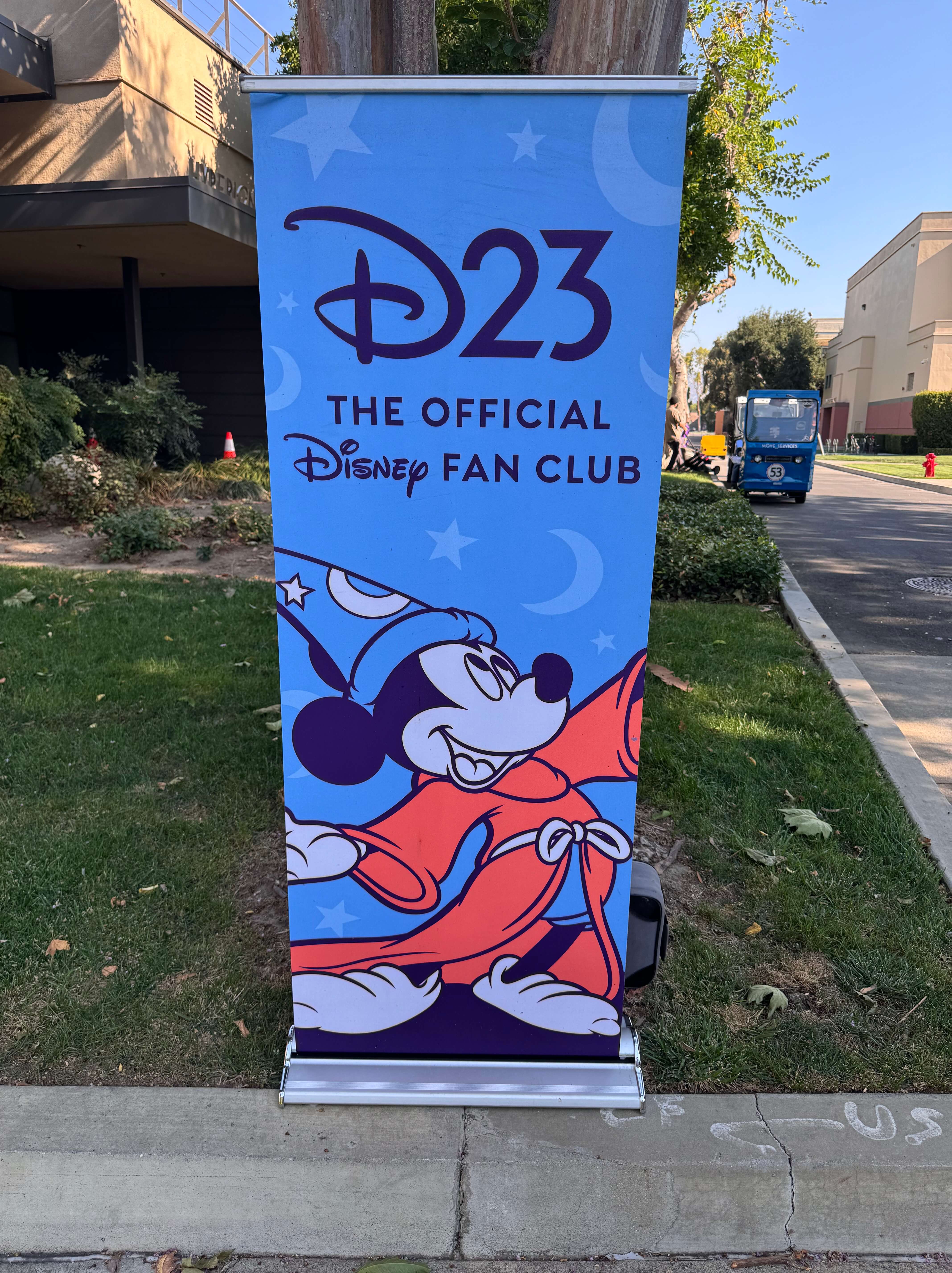 Wir parkten unser Auto bei sonnigen 24 Grad und flüchteten in den Schatten am Studioeingang. Dort entdeckten wir bereits ein Rollup vom D23 Club und kurz darauf begann der Checkin. Insgesamt waren wir diesen Morgen acht Teilnehmer. Da jedes D23 Mitglied nur einen Gast mitnehmen darf, waren meine Tochter und ich berechtigt, jeweils ein anderes Familienmitglied mitzunehmen. Nach dem Checkin begrüßte uns dann unser Tour-Guide Julia und erklärten uns kurz den Ablauf.