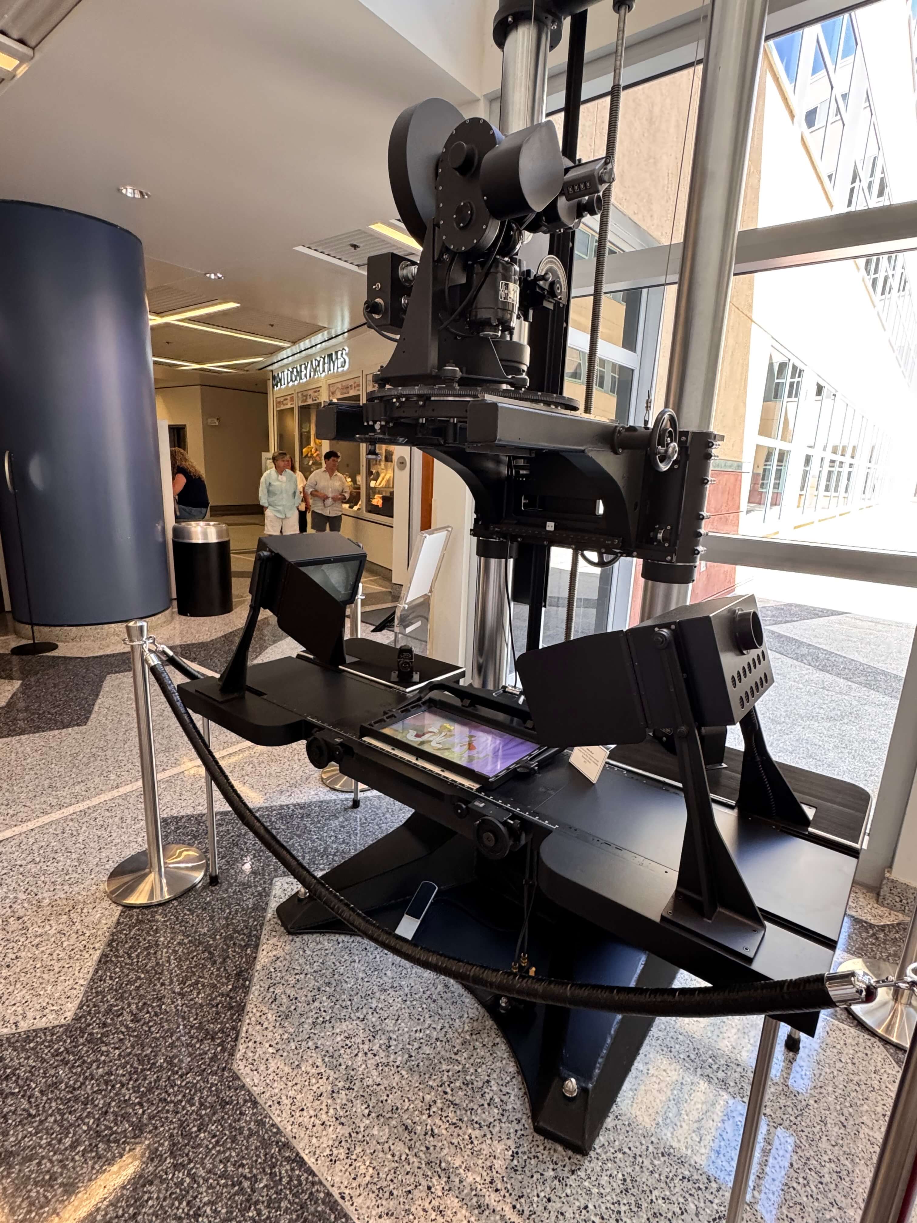 Auf dem Weg zu den Disney-Archiven warfen wir im Flur des nächsten Gebäudes einen Blick auf die legendäre Multiplan-Kamera. Unser Guide erklärte, wie dieses Gerät den Zeichentrick revolutionierte, indem es verschiedene Ebenen einer Szene getrennt filmte und so Tiefe und Bewegung erzeugte. Zu sehen, wie diese Erfindung Filme wie Bambi oder Pinocchio so lebendig machte, war beeindruckend – ein Beweis dafür, dass Innovation schon immer Teil der Disney-DNA war.