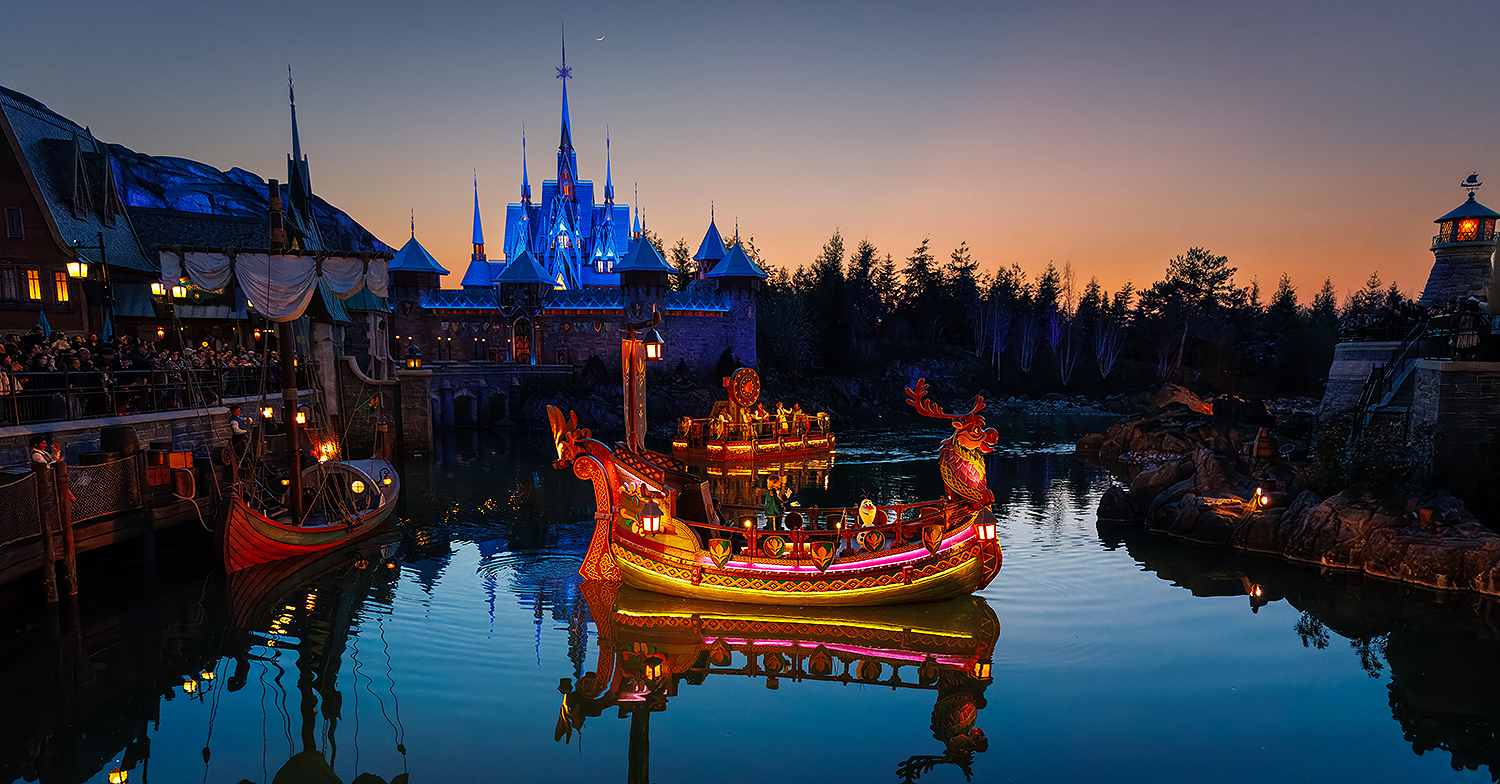 Die Show nutzt die gesamte Kulisse der World of Frozen: das Schloss, der Dorfplatz, die Bergspitzen des Nordbergs und die Bucht selbst wirken wie eine Bühne, die speziell für dieses Erlebnis geschaffen wurde. Wenn die drei Wikingerschiffe über das Wasser gleiten, entsteht ein Gefühl, das sich irgendwo zwischen Parade, Open-Air-Musical und Live-Animation bewegt.