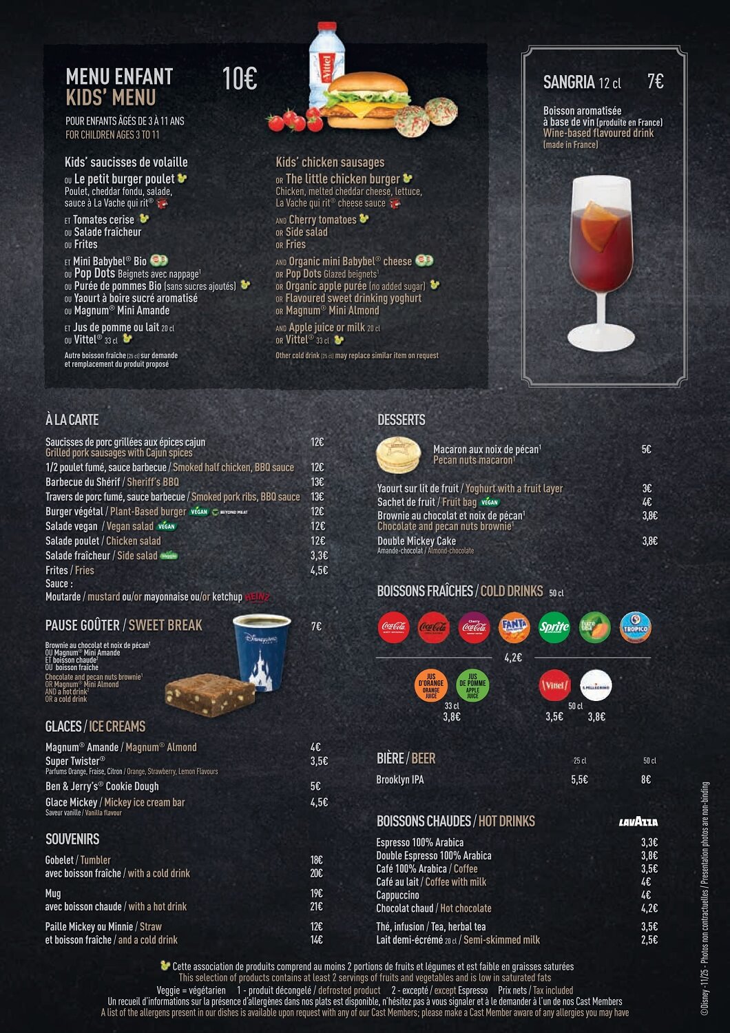 oder Trinkjoghurt (Yaourt à boire) oder Mini Magnum Mandel (Magnum Mini amande) - Getränk: Vittel 0,33l oder Apfelsaft 0,2l oder Milch 0,2l oder Erfrischungsgetränk 0,25l