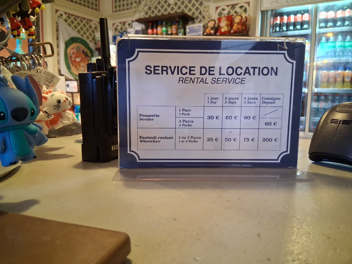 Bevor ich den Park jedoch verließ, bin ich zur Rollstuhl Vermietung gegangen, welche sich links (aus Richtung vom Schloss) vorm Bahnhof befindet. Ich habe dann für die 2 Tage einen Rollstuhl entliehen. Nach dem mir die Dame die ganzen Konditionen erklärt hatte konnte ich losziehen Richtung Hotel. Die aktuellen Preise blende ich euch mal ein, falsch es jmd interessiert.