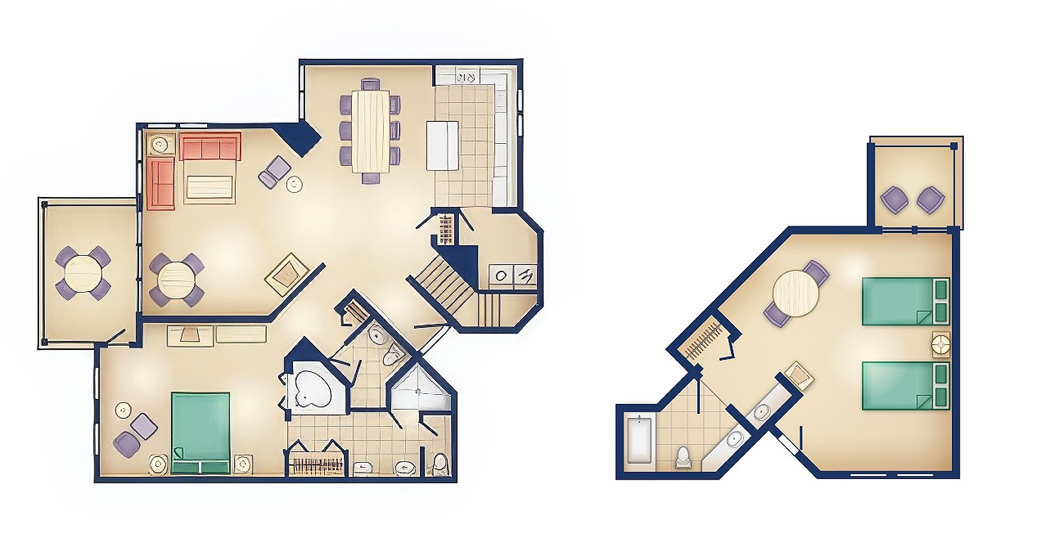 Bei Disney's Old Key West Resort handelt es sich um das erste Disney Vacation Club-Resort in Disney World. Das bedeutet, dass es hier keine regulären Hotelzimmer gibt. Stattdessen hast Du die Wahl zwischen einem 'Deluxe Studio', einer Villa mit einem Schlafzimmer, einer Villa mit zwei Schlafzimmern und einer Grand Villa mit drei Schlafzimmern.